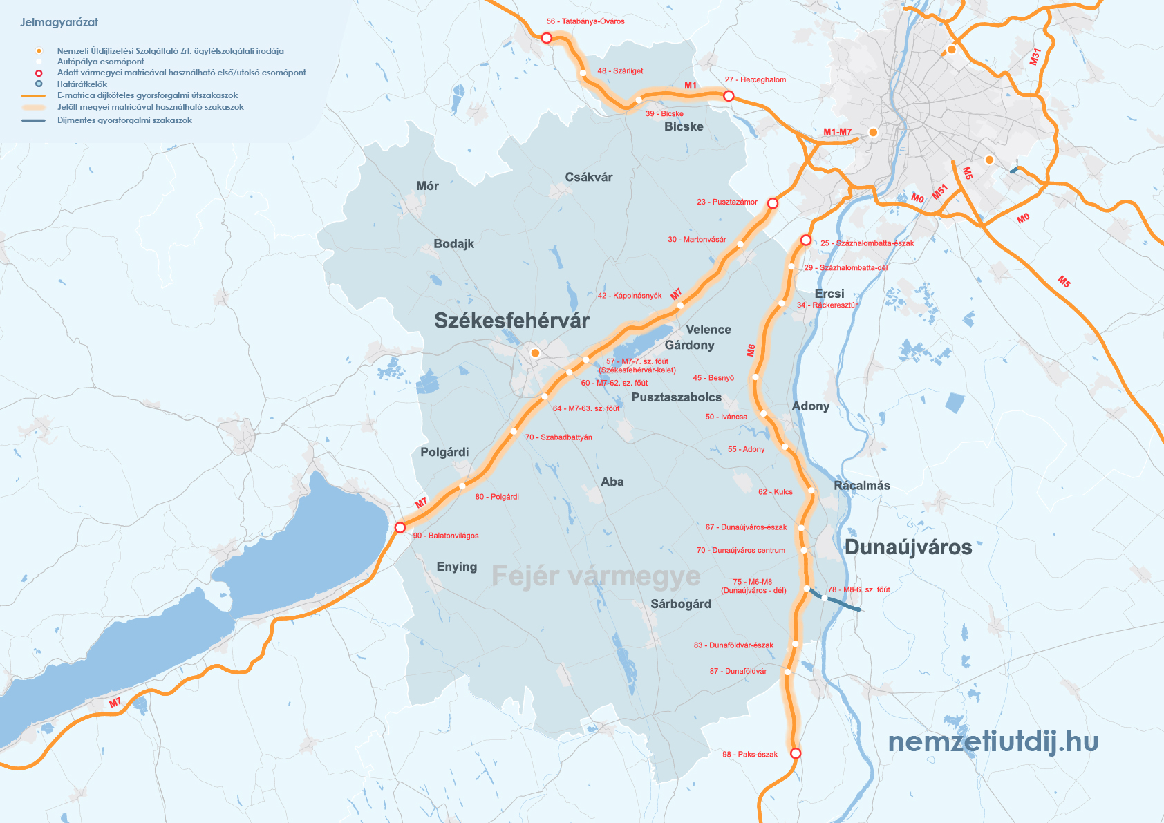 - az adott vármegye díjköteles gyorsforgalmi úthálózatán használható, éves érvényességű, azaz a vásárlás időpontjától (decemberi elővásárlás esetén a tárgyév első napjától) a tárgyévet követő év január 31. napján éjfélig biztosít úthasználati jogosultságot.